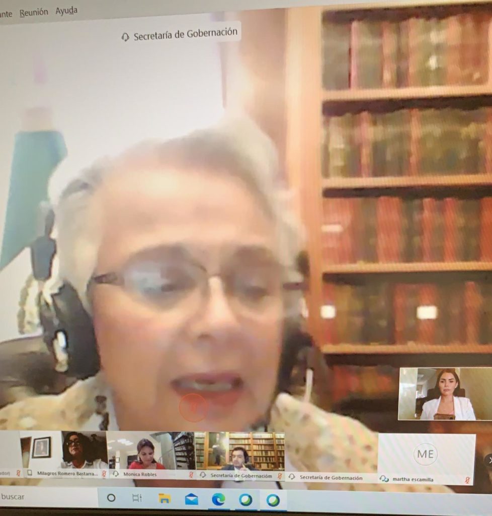 En una reunión virtual de trabajo con la Secretaria de Gobernación, Olga Sánchez Cordero y Presidentas de Comisiones de Igualdad de los Congresos Locales del país, analizaron el tema de “Violencia Política” y el incremento de la Violencia contra las mujeres durante la Pandemia del coronavirus Covid-19