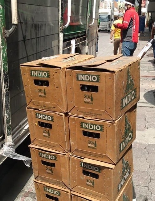 Por los rumbos de la metrópoli se observó a los camiones de la industria cervecera que apilaban el producto en los llamados diablitos para introducirla a los negocios.