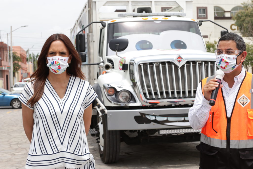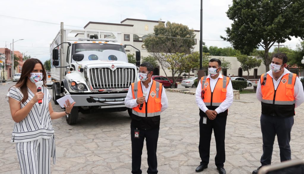 “Nosotros tenemos cuatro equipos que están sanitizando los espacios en el municipio”, señaló la Munícipe, “con este camión vamos a poder sanitizar colonias enteras gracias al apoyo de International”.