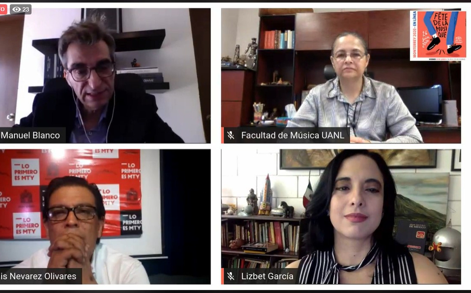 Durante su participación en la conferencia de prensa virtual, Luis Nevárez, Director de Cultura del municipio, anunció la apertura del festival y, junto con Graciela Mirna Marroquín, coordinadora de la Facultad de Música; Lizbeth García Rodríguez, directora de Desarrollo Cultural de Máxima Casa de Estudios; y José Manuel Blanco, encargado de la Cooperación Cultural, Audiovisual y Educativa, de la embajada de Francia en Monterrey, informaron de otras actividades.