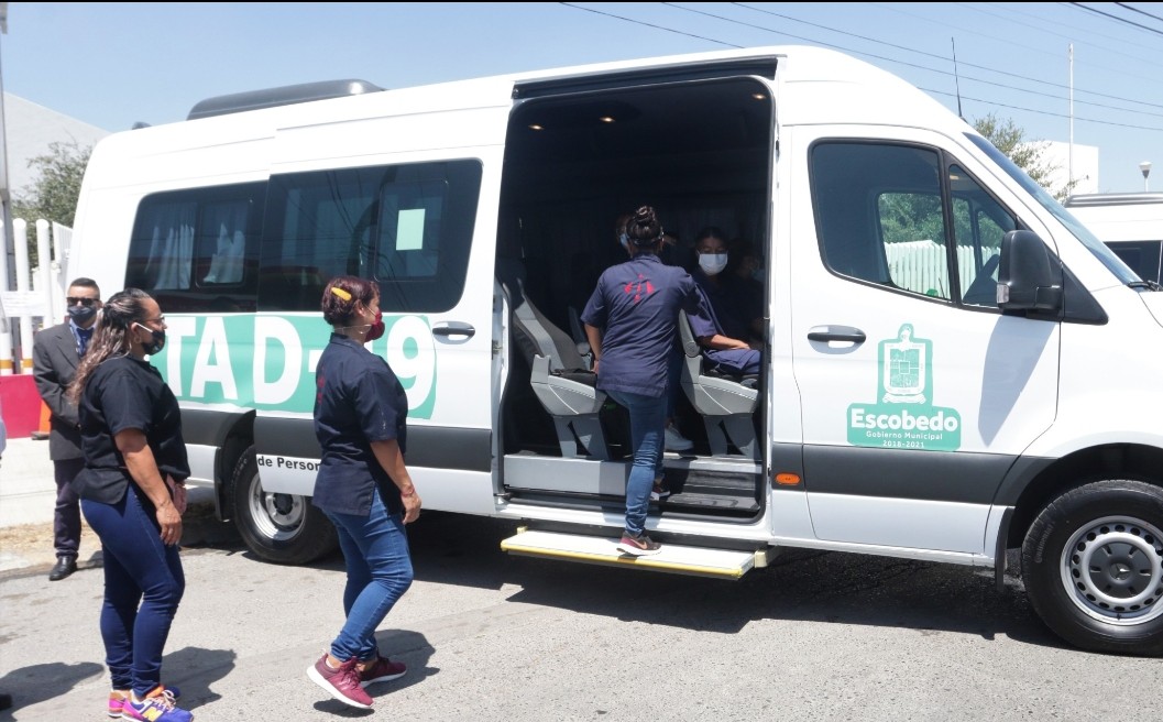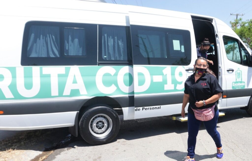 A través de la Ruta COVID-19, doctores, enfermeras, personal administrativo, de seguridad y limpieza que viven y trabajan en Escobedo como de otros municipios, se beneficiarán con traslados en unidades sanitizadas y equipadas con gel antibacterial, cubrebocas y medidas de sana distancia.