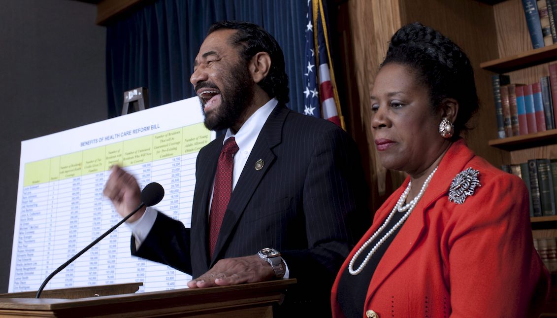 LOS01 WASHINGTON (ESTADOS UNIDOS) 25/3/2010.- La congresista demócrata Sheila Jackson Lee (Texas), (d), y el también congresista demóctata por Texas, Al Green, ofrecen una rueda de prensa sobre la ley de reforma sanitaria promulgada por el presidente Barack Obama, hoy, jueves, 25 de marzo de 2010. EFE/Jim Lo Scalzo