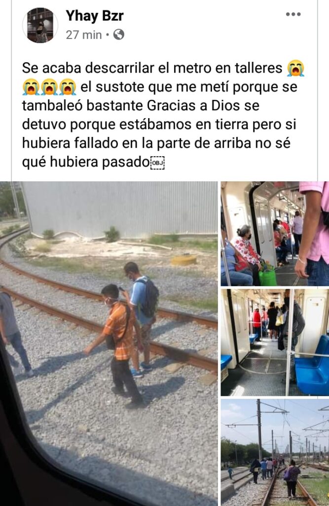 Uno de los vagones se detuvo en medio del trayecto y los pasajeros tuvieron que bajar y caminar sobre las vías hasta la Estación Talleres, pero como sucede en este tipo de situaciones, extraoficialmente, los usuarios dijeron que la falla pudo haber sido ocasionada por un error humano al activar el cambio de vía.