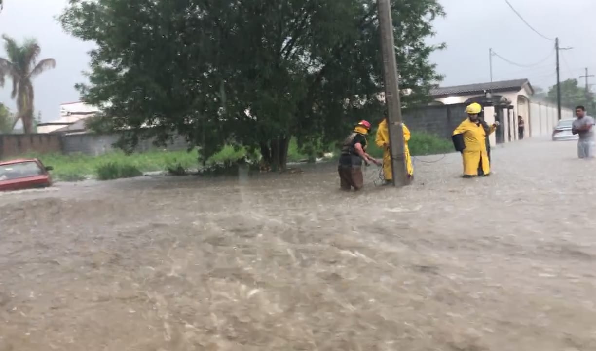 Protección Civil del Estado reportó el rescate de cinco personas que viajaban en motocicleta y una unidad arrastrada por la corriente de un río, árboles caídos y sectores sin energía.