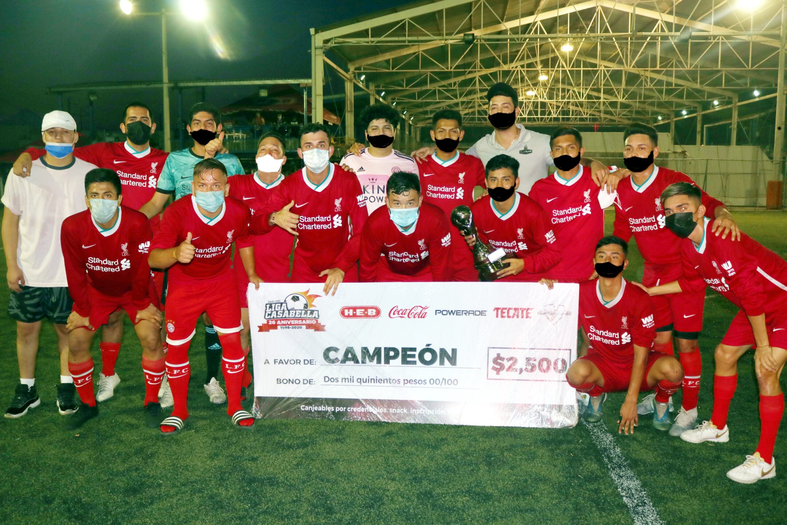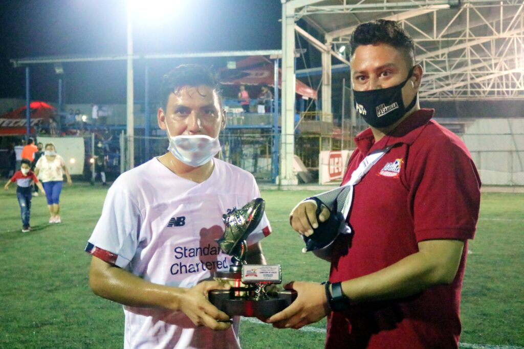 Correspondió a Gerardo Guerra Lozano, presidente de la Liga CasaBella hacer entrega del trofeo al equipo campeón del Torneo Nocturno de los Lunes, así como al campeón goleador Brayan Medellín con 28 tantos.