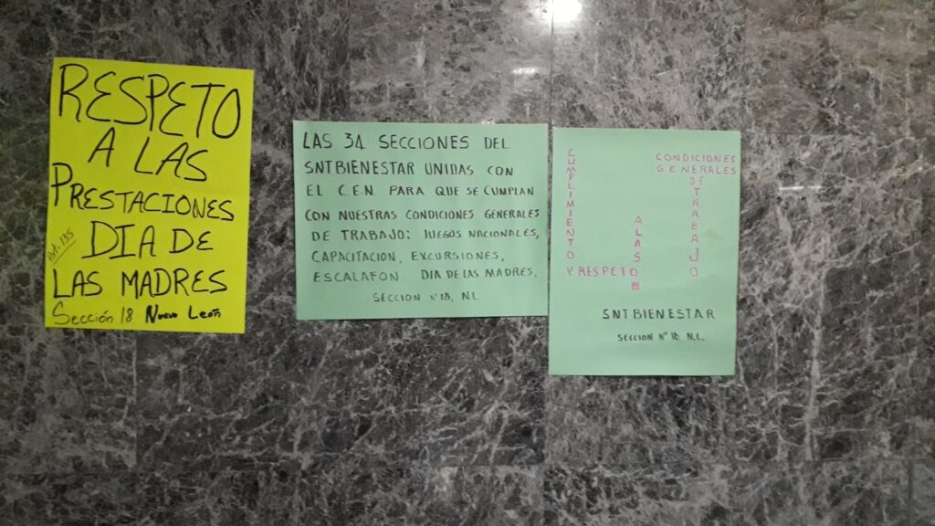 Con pancartas que colocaron en la dependencia exigieron el cumplimiento al calendario de escalafón, respeto al cumplimiento que establecieron en las condiciones generales de trabajo y otras conquistas sindicales como la capacitación.