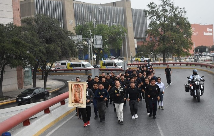 Los elementos policiacos salieron desde las de las instalaciones de la Secretaría de Seguridad y Protección a la Ciudadanía de Monterrey, ubicadas en el Parque Alamey, para realizar el recorrido hasta la Basílica de Guadalupe, en la Colonia Independencia.