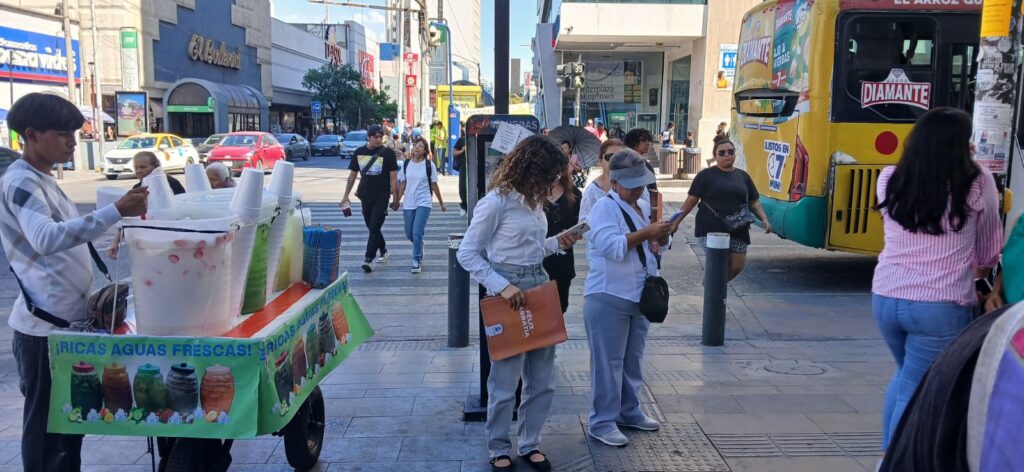 Aunque visiblemente no portaban algún gafete o logo de alguna empresa, al ser cuestionadas varias mujeres que repartían el panfleto, coincidieron en señalar que fueron invitadas por personal del municipio de Juárez para hacer la distribución.