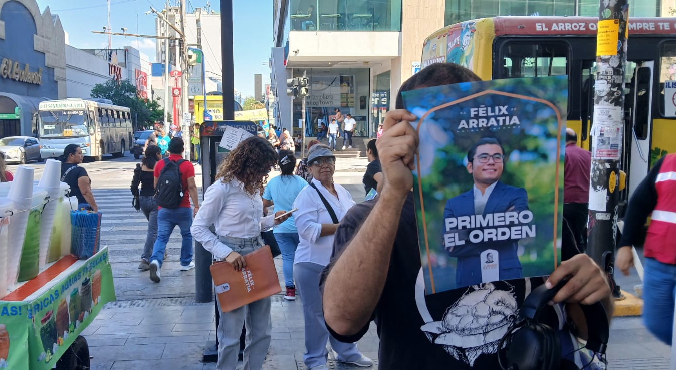En lo que es un evidente acto anticipado de campaña electoral, el emecista Félix Arratia implantó un operativo de promoción de sus logros como alcalde de Juárez, pero en el centro de la ciudad de Monterrey.