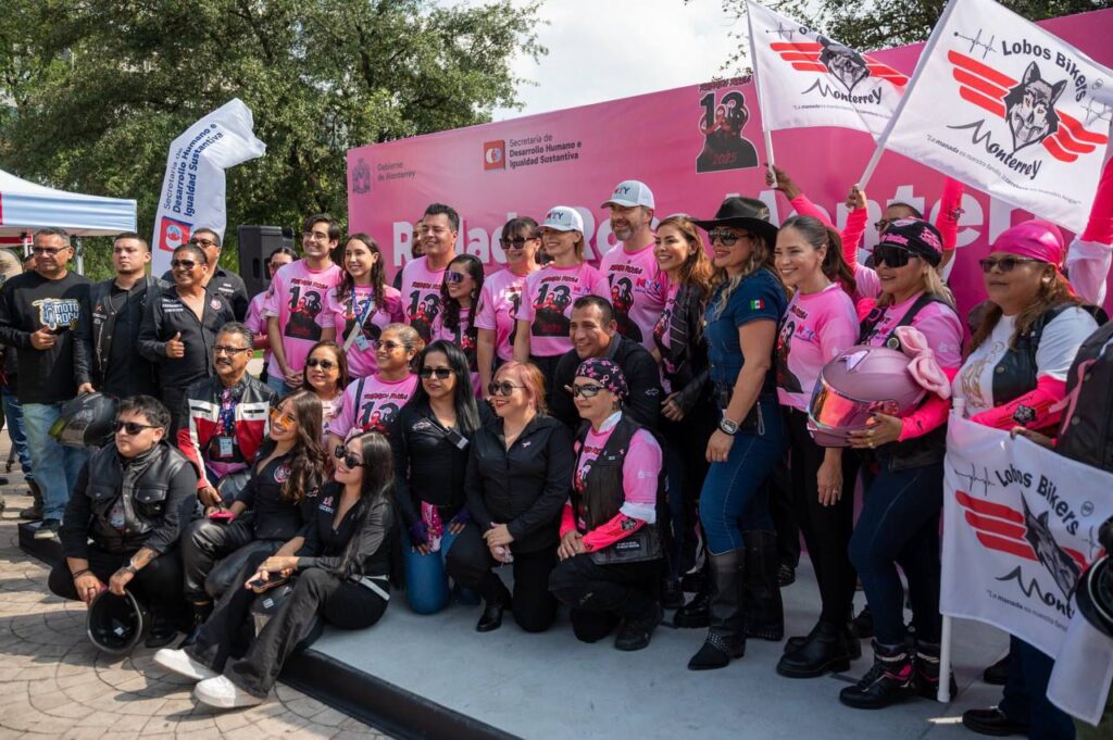 Acompañado por su esposa, Gaby Oyervides González, presidenta del DIF Monterrey; por la secretaria de Desarrollo Humano e Igualdad Sustantiva, Karina Barrón Perales; el director de Salud, Ricardo de la Rocha; y la directora General del DIF, Ivonne Álvarez García, el edil dio el cornetazo de salida de la rodada, en la que también participó el motoclub Hell Bandits, aliado en esta iniciativa de visibilización.