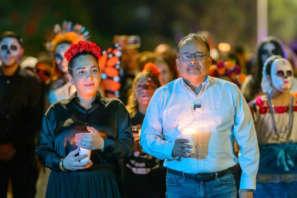 Durante el trayecto, el desfile hará una pausa especial en el Panteón Jardín del Edén, donde el Alcalde Andrés Mijes encabezarán una emotiva procesión iluminada por decenas de velas, en honor a los seres queridos que ya no están con rumbo a la Presidencia Municipal.