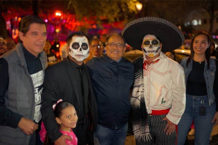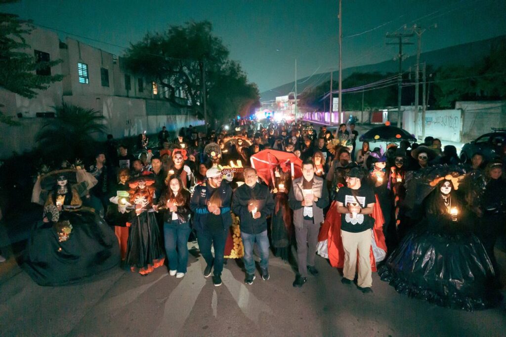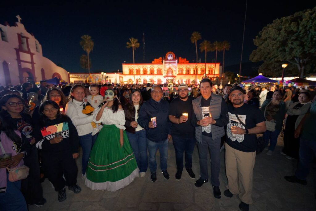 Durante el recorrido, el desfile hizo una pausa especial en el Panteón Jardín del Edén, donde el Alcalde Andrés Mijes, así como su familia y Felipe Canales, Secretario del Ayuntamiento, encabezaron una conmovedora procesión iluminada por decenas de velas, símbolo de amor y recuerdo hacia quienes partieron.