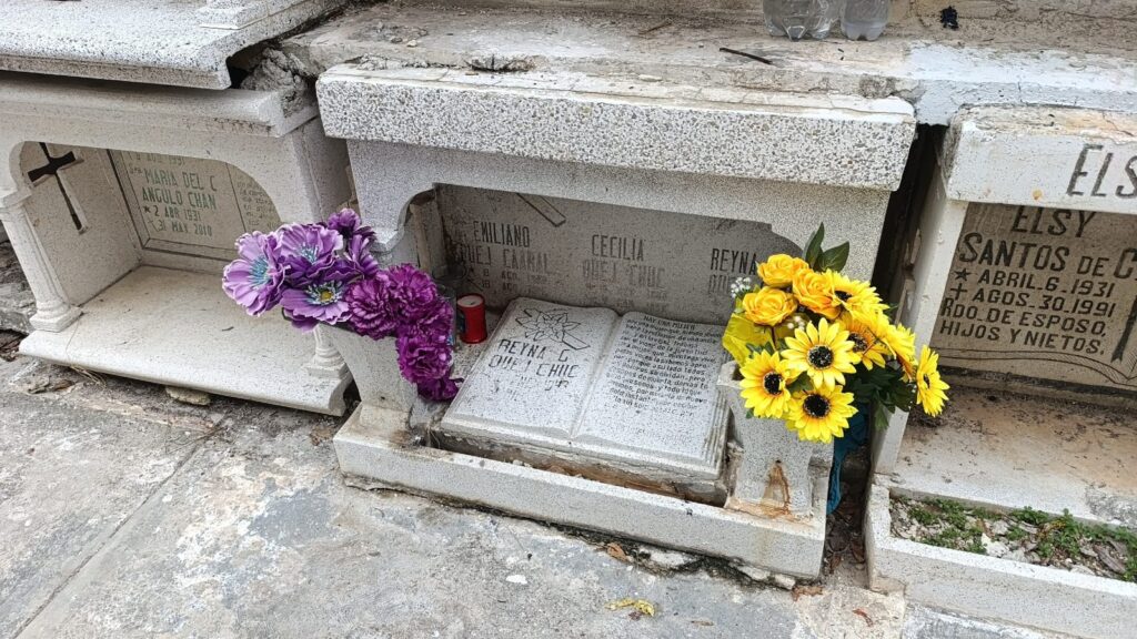 En Mérida, don Elías coloca xtabentún y cochinita pibil en la tumba de su esposa. Las almas comen la esencia. Por eso les dejamos lo mejor”, dice mientras los niños corren con papalotes que dicen “Te extraño”.
