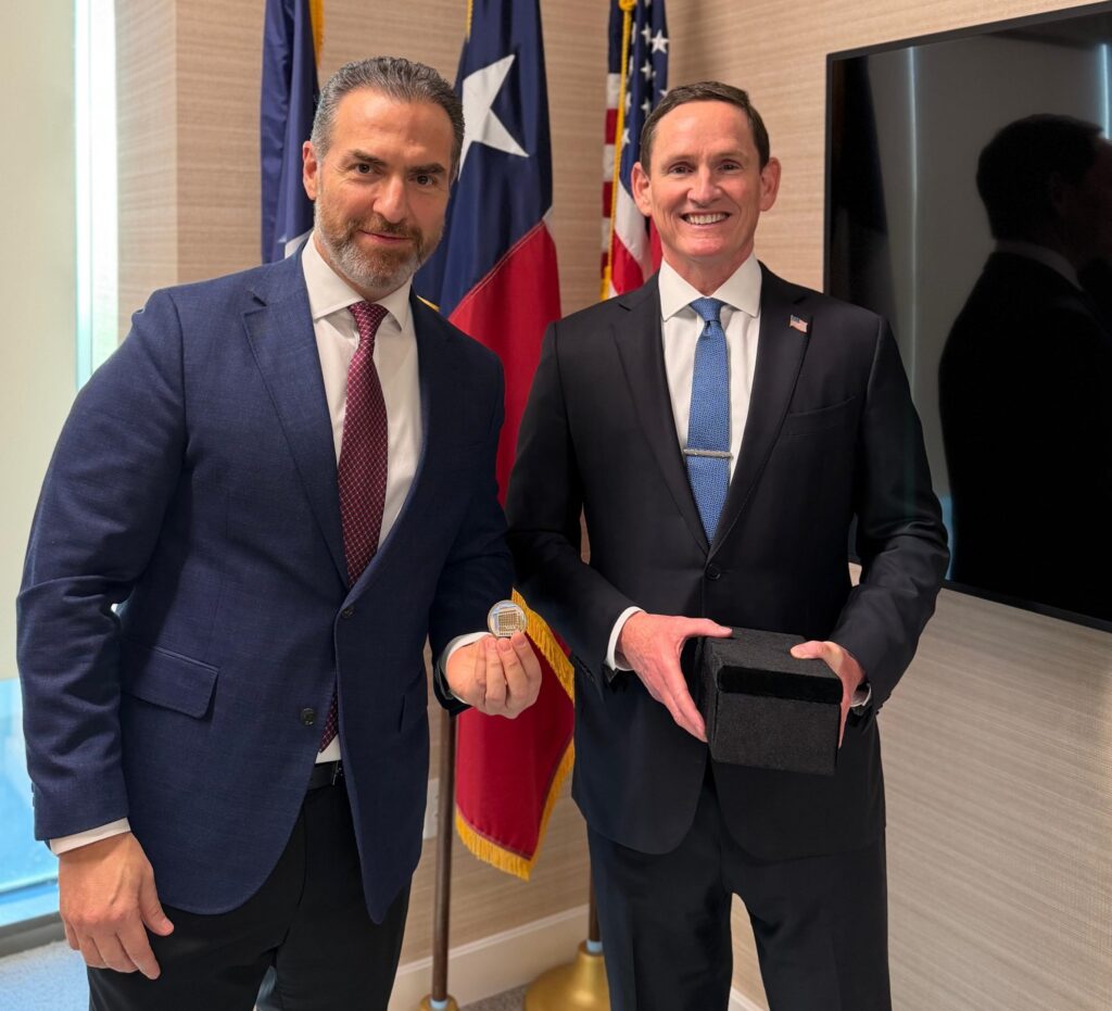 Este martes el primer encuentro fue con Clay Lewis Jenkis, Juez del Condado de Dallas en la Corte de Comisionados, donde se abordó el trabajo del condado en materia de vigilancia, capacitación, movilidad, infraestructura y comercio internacional. “Estamos saliendo de una visita muy importante con el Juez del Condado de Dallas, o la máxima autoridad del Condado de Dallas, donde pudimos platicar e intercambiar muchas de las acciones que están haciendo ya aquí en Dallas con relación a los próximos juegos de FIFA o del Mundial.