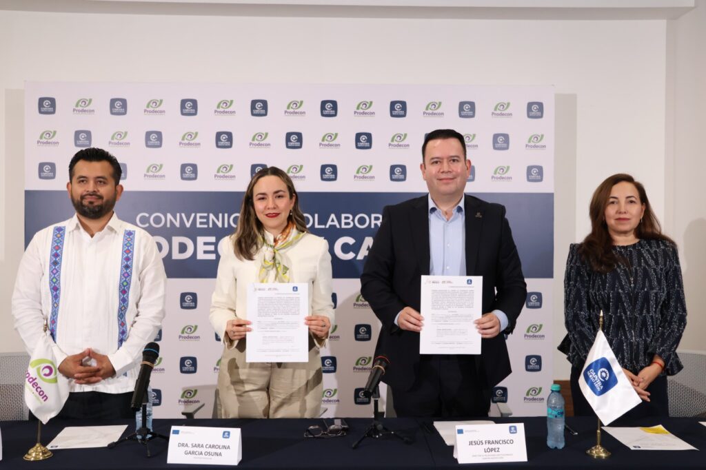 Por su parte, la delegada de PRODECON en el estado, Sara García Osuna; subrayó la relevancia de este compromiso.“Con esto buscamos dar mayor difusión no solo a las pequeñas, o grandes o medianas; sino también con las micro empresas o las que son RESICO, buscamos nosotros atraerlas muchísimo y sabemos que a través de CAINTRA va a ser un canal de comunicación para llegar a ellas”.