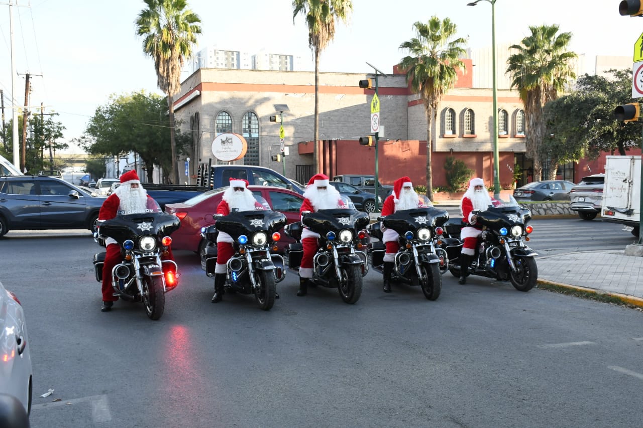 Con una tradición que tiene más de 20 años, un grupo de oficiales de Tránsito de Monterrey salió a las calles de la ciudad, portando el traje de Santa Clós.