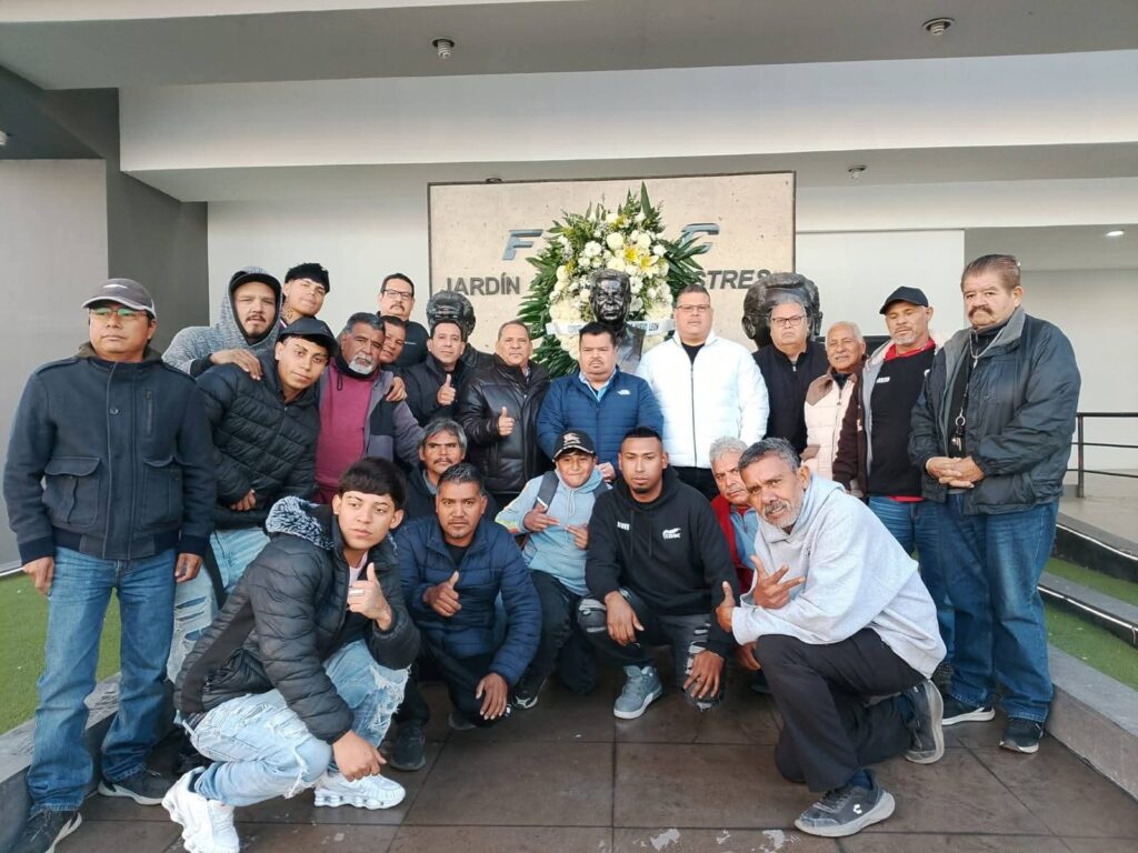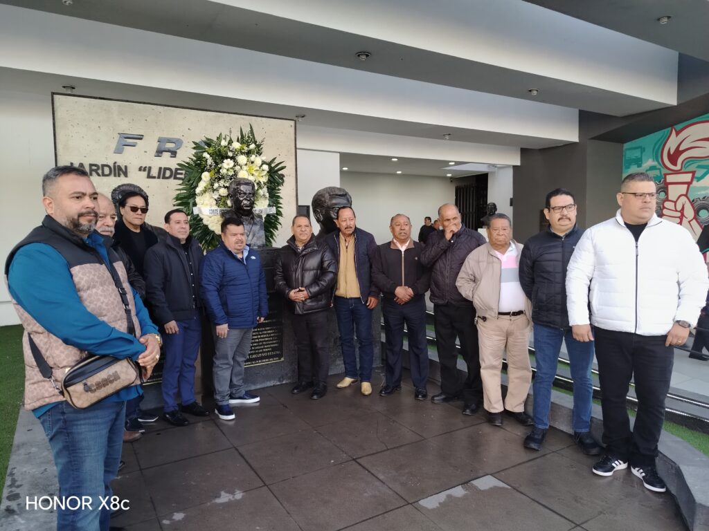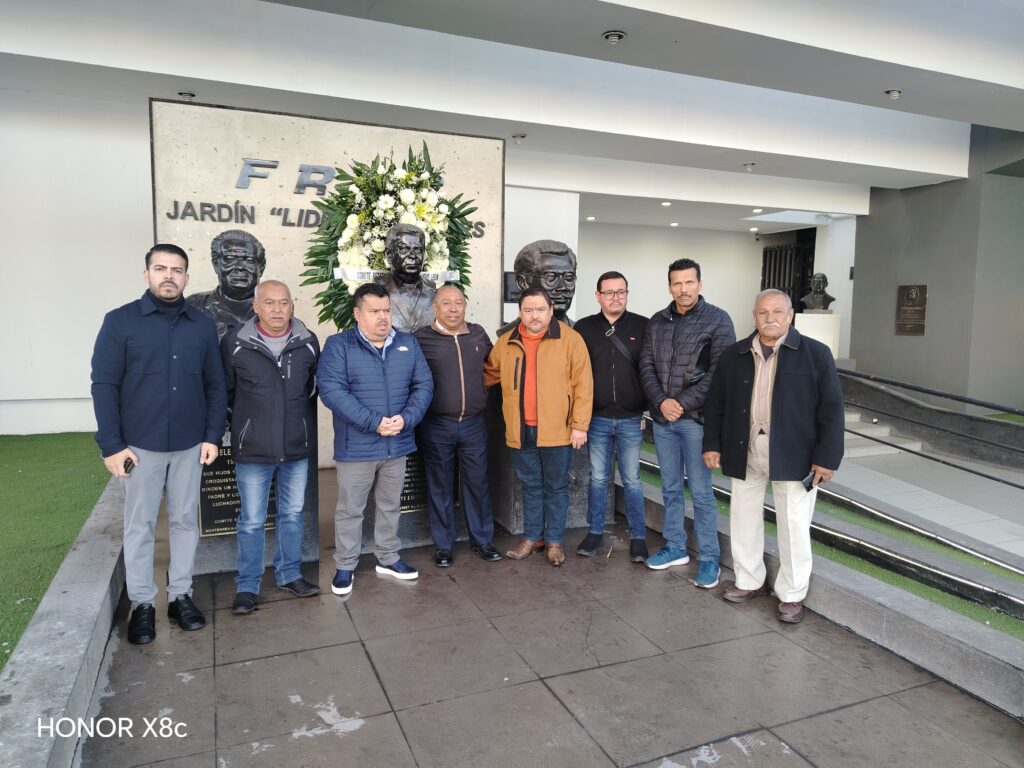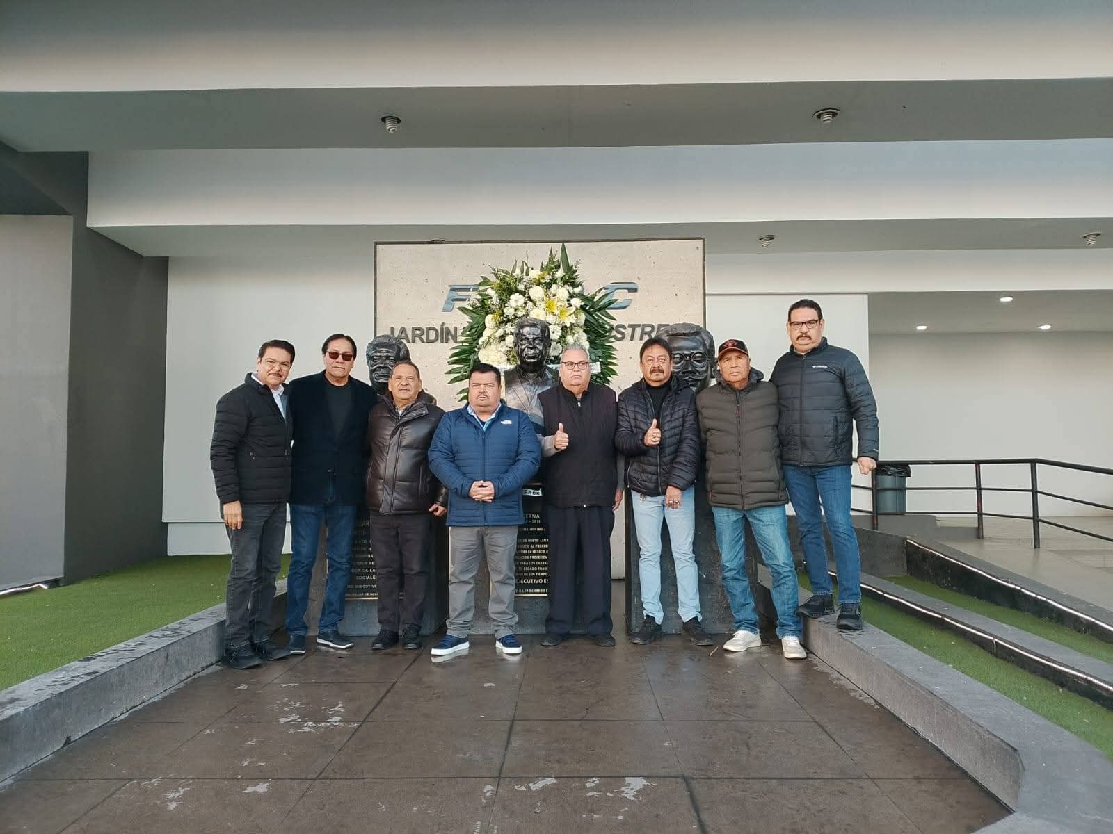 -Mire-, el compañero señalaba la figura de Agustin en el impresionante mural, junto al Jardín de los Líderes Ilustres donde, presuroso, buscaba el mejor sitio, el más adecuado para colocar la corona floral con una devoción admirable hacia Serna Servín quien en vida destacó por su apasionado liderazgo en defensa de los trabajadores y de la CROC.