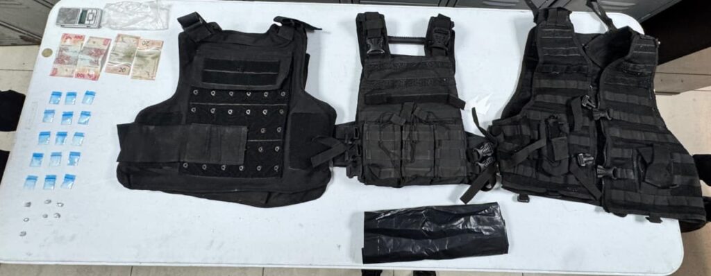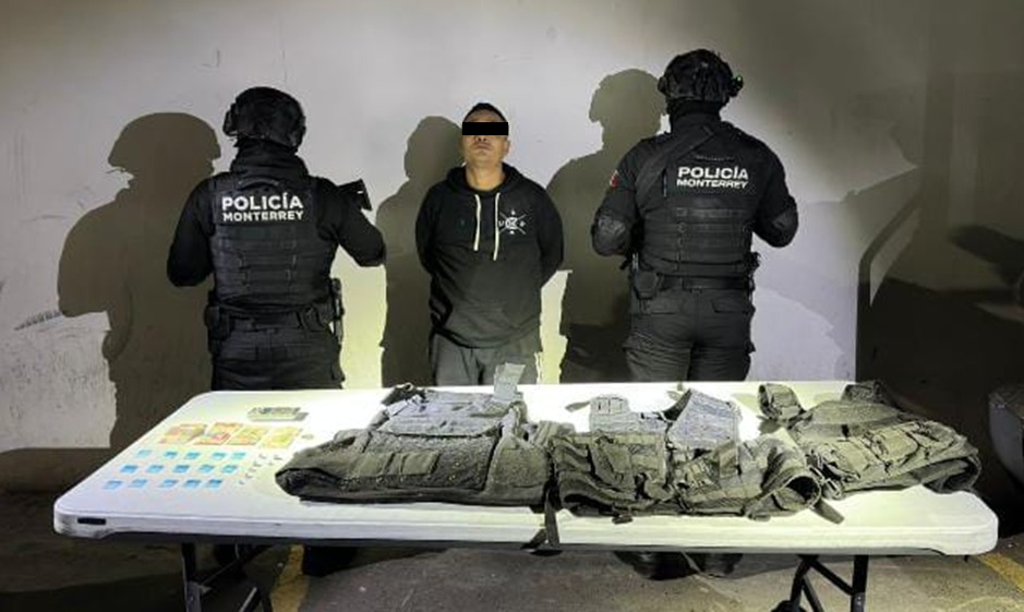 Por presuntamente portar en una bolsa 22 envoltorios con una sustancia sólida similar a la cocaína en polvo y en piedra, respectivamente, así como tres chalecos antibalas, un hombre fue detenido por oficiales de la Policía de Monterrey, en la colonia Terminal.