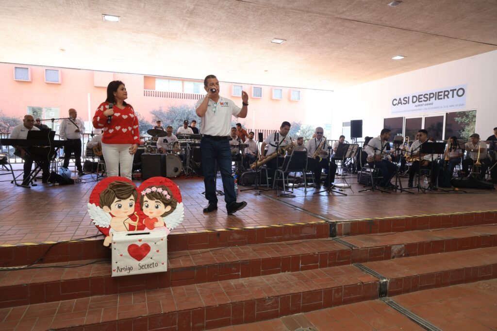 A diferencia de otros domingos, esta ocasión fue especial, ya que, por instrucciones del alcalde Adrián de la Garza, se dedicó a festejar el Día del Amor y la Amistad, organizando el juego del “amigo secreto” en el que los asistentes podían depositar en un contenedor regalos o cartitas románticas.