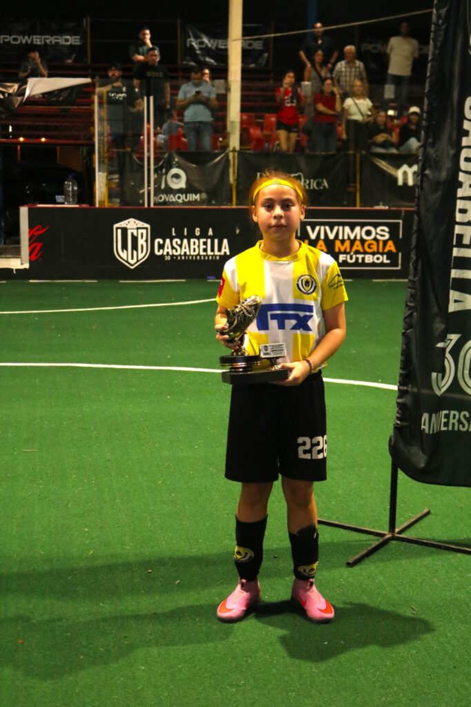 Al termino del partido, Regina Falcón del equipo Guerreros Royal recibió el botín de campeona de goleo, con un total de 10 anotaciones.